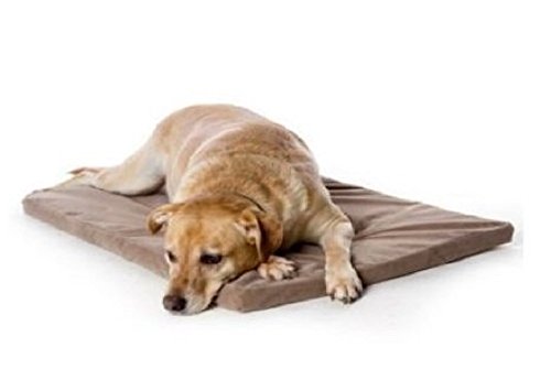 Brindle 4 Inch Memory Foam Orthopedic Dog Bed – Removable Velour Cover with Waterproof Liner – Medium Khaki 34 Inch x 22 Inch