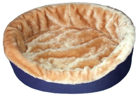 Dog Bed King USA Medium Plush Tan Fur Dog Ortho Comfort Bed, 27-Inch by 21-Inch by 7-Inch, Navy Blue